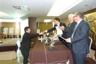 En el caso de los distinguidos por la ETS de Vigo, el Colegio de Ingenieros Industriales de Galicia entregó el primer premio de la modalidad Introducción a la Investigación a Felipe Arias González por su trabajo “Diseño de transportadores de operarios para la mejora ergonómica de puestos de trabajo del sector del automóvil”. El jurado concedió un accésit a David Botana Olañeta por su estudio “Proceso de fabricación de piezas de un vehículo híbrido de bajo coste”. Los tres ganadores recibieron un premio de 625 euros, más diploma acreditativo; mientras que el accésit recibió un premio de 450 euros y diploma acreditativo.